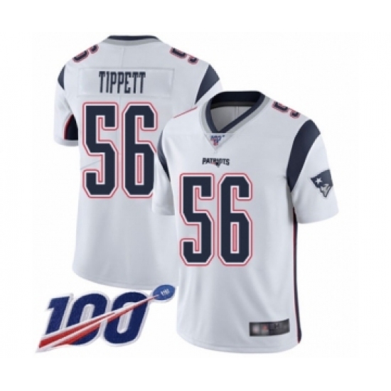 >Men's New England Patriots #56 Andre Tippett White Vapor Untouchable Limited Player 100th Season Football Jersey