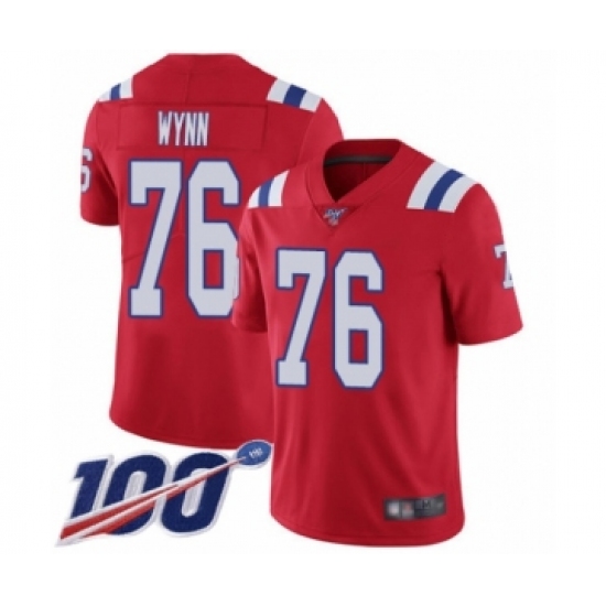 >Men's New England Patriots #76 Isaiah Wynn Red Alternate Vapor Untouchable Limited Player 100th Season Football Jersey
