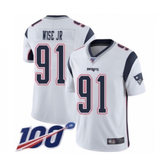 Men's New England Patriots #91 Deatrich Wise Jr White Vapor Untouchable Limited Player 100th Season Football Jersey