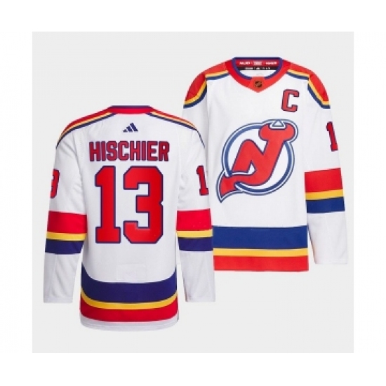 Men's New Jersey Devils #13 Nico Hischier White 2022-23 Reverse Retro Stitched Jersey