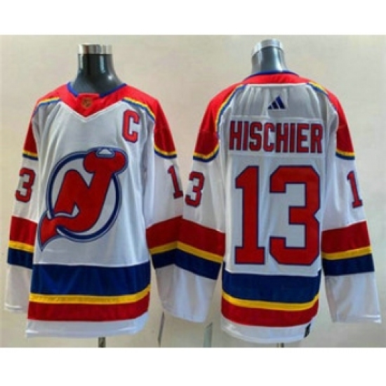 Men's New Jersey Devils #13 Nico Hischier White 2022 Reverse Retro Stitched Jersey