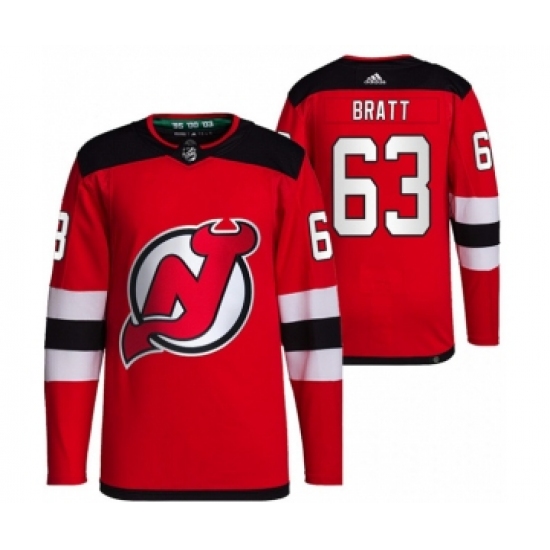 >Men's New Jersey Devils #63 Jesper Bratt Red Stitched Jersey
