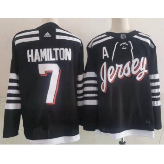 Men's New Jersey Devils #7 Dougie Hamilton adidas Black 2021-22 Alternate Primegreen Authentic Pro Player Third Jersey