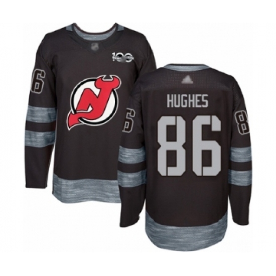 Men's New Jersey Devils #86 Jack Hughes Authentic Black 1917-2017 100th Anniversary Hockey Jersey