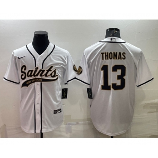 >Men's New Orleans Saints #13 Michael Thomas White With Patch Cool Base Stitched Baseball Jersey