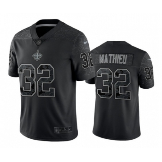 >Men's New Orleans Saints #32 Tyrann Mathieu Black Reflective Limited Stitched Football Jersey