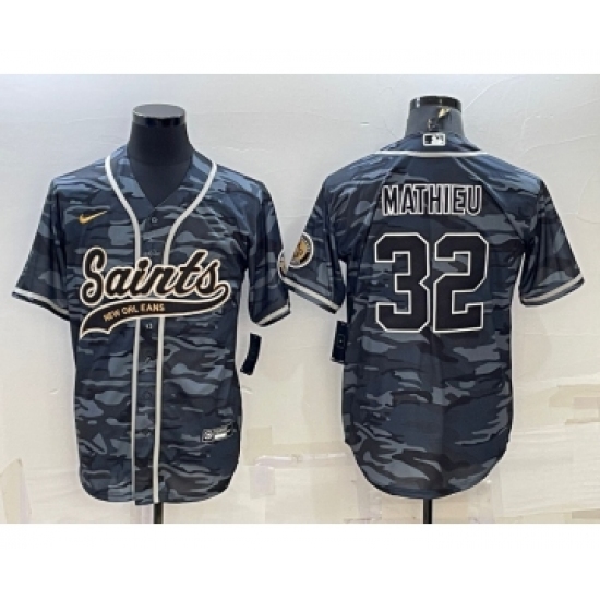 >Men's New Orleans Saints #32 Tyrann Mathieu Grey Camo With Patch Cool Base Stitched Baseball Jersey