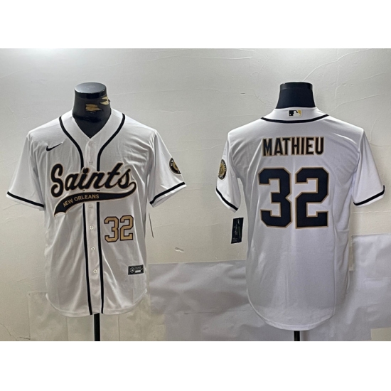 Men's New Orleans Saints #32 Tyrann Mathieu White Cool Base Stitched Baseball Jersey