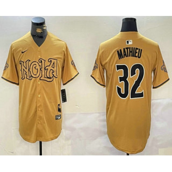 >Men's New Orleans Saints #32 Tyrann Mathieu Yellow Nola Baseball Jersey