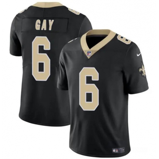 >Men's New Orleans Saints #6 Willie Gay Black Vapor Limited Football Stitched Jersey