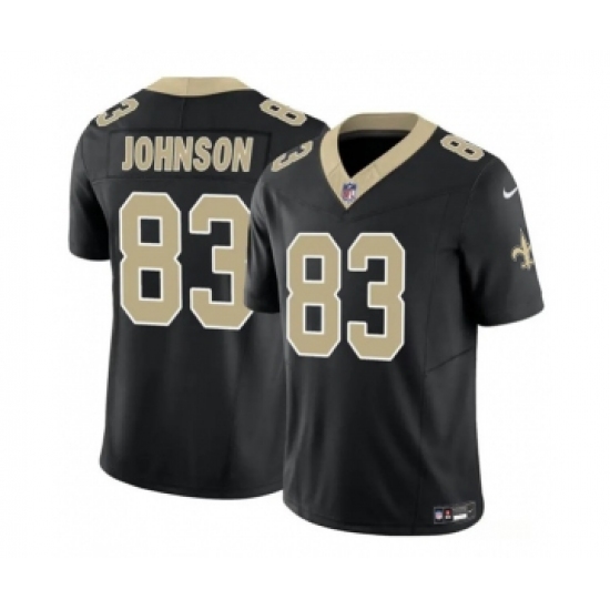 >Men's New Orleans Saints #83 Juwan Johnson Black 2023 F.U.S.E. Vapor Untouchable Limited Football Stitched Jersey