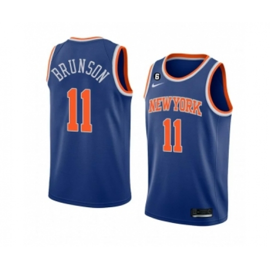 >Men's New Yok Knicks #11 Jalen Brunson Blue With NO.6 Stitched Basketball Jersey