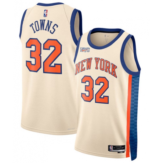 Men's New Yok Knicks #32 Karl-Anthony Towns Cream 2025-26 City Edition Swingman Stitched Basketball Jersey