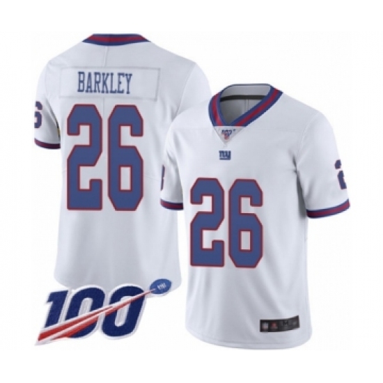 >Men's New York Giants #26 Saquon Barkley Limited White Rush Vapor Untouchable 100th Season Football Jersey