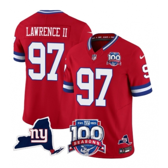 >Men's New York Giants #97 Dexter Lawrence II Red 2025 F.U.S.E. 100th Season & State Patch Vapor Limited Football Stitched Jersey