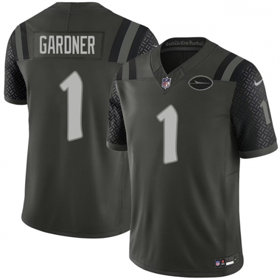 >Men's New York Jets #1 Ahmad Gardner Black 2025 F.U.S.E. “Rivalries” Vapor Limited Football Stitched Jersey