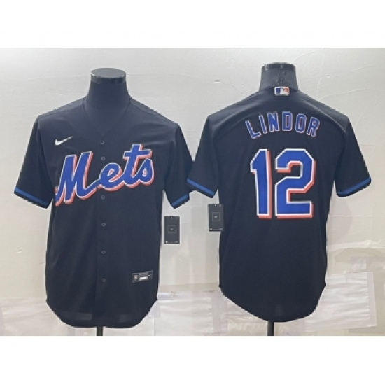 Men's New York Mets #12 Francisco Lindor Black Stitched MLB Cool Base Nike Jersey