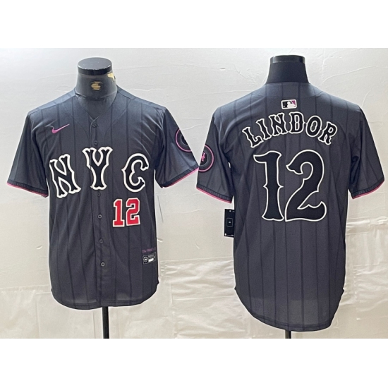 Men's New York Mets #12 Francisco Lindor Number Grey 2024 City Connect Cool Base Stitched Jerseys