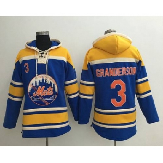 >Men's New York Mets #3 Curtis Granderson Blue With Orange Baseball MLB Hoodie