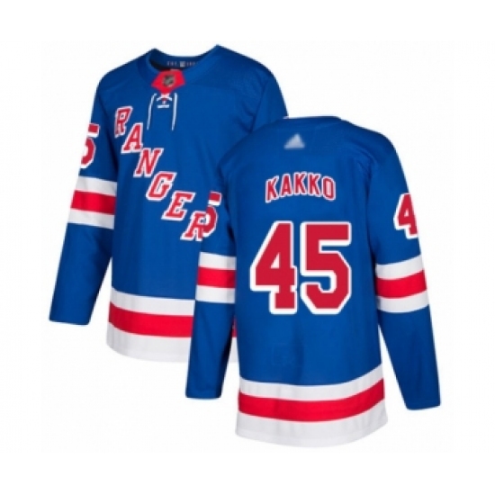 >Men's New York Rangers #45 Kaapo Kakko Authentic Royal Blue Home Hockey Jersey
