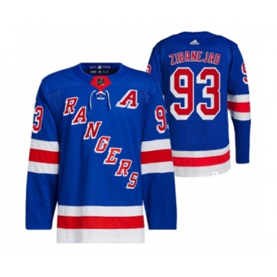 Men's New York Rangers #93 Mika Zibanejad Blue With A Stitched Hockey Jersey