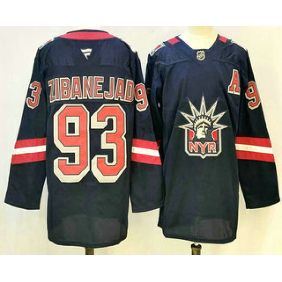 Men's New York Rangers #93 Mika Zibanejad Navy 2020-21 Reverse Retro Alternate Hockey Jersey