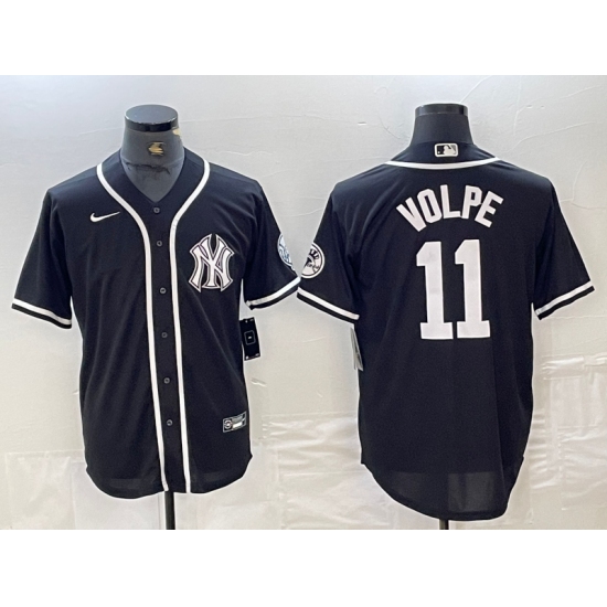 >Men's New York Yankees #11 Anthony Volpe Black White Cool Base Stitched Jersey