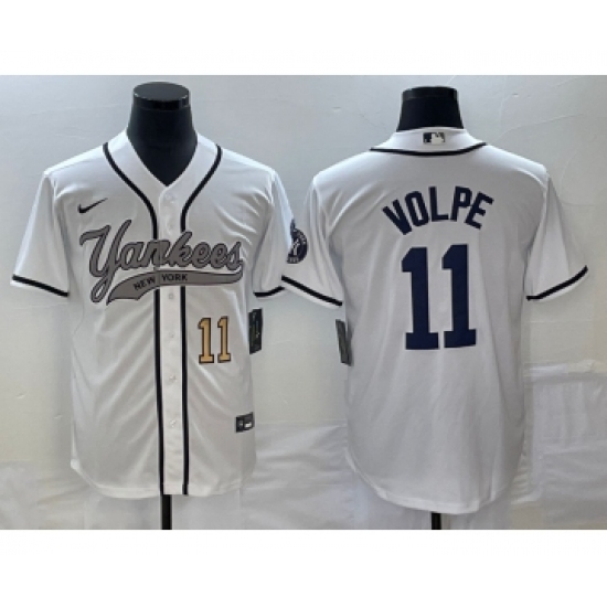 Men's New York Yankees #11 Anthony Volpe Number White Cool Base Stitched Baseball Jersey