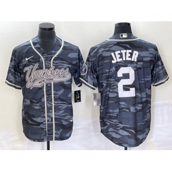 Men's New York Yankees #2 Derek Jeter Grey Camo Cool Base Stitched Baseball Jersey