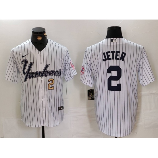 Men's New York Yankees #2 Derek Jeter White Pinstripe Fashion Cool Base Jerseys