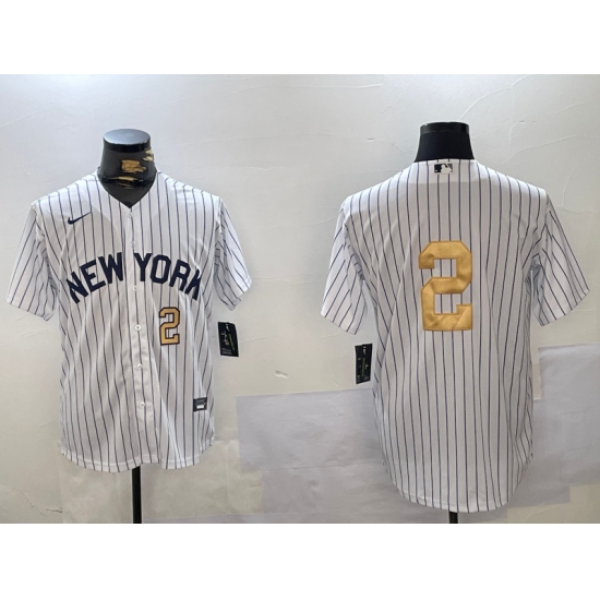 Men's New York Yankees #2 Derek Jeter White Pinstripe Without Name Fashion Cool Base Jerseys