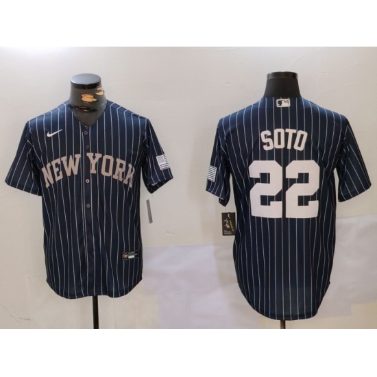 >Men's New York Yankees #22 Juan Soto Navy Pinstripe Fashion Cool Base Jersey