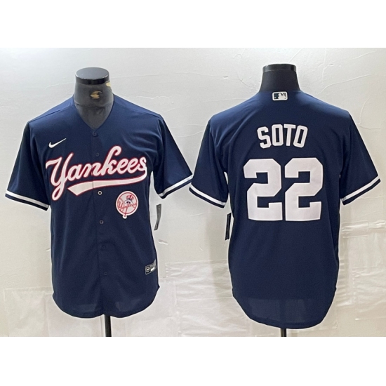 Men's New York Yankees #22 Juan Soto Navy With Cool Base Stitched Baseball Jersey