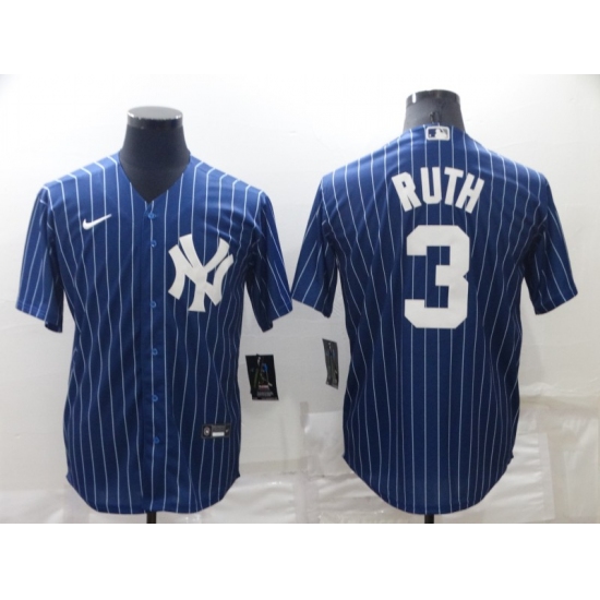 Men's New York Yankees #3 Babe Ruth Navy Blue Pinstripe Stitched MLB Cool Base Nike Jersey