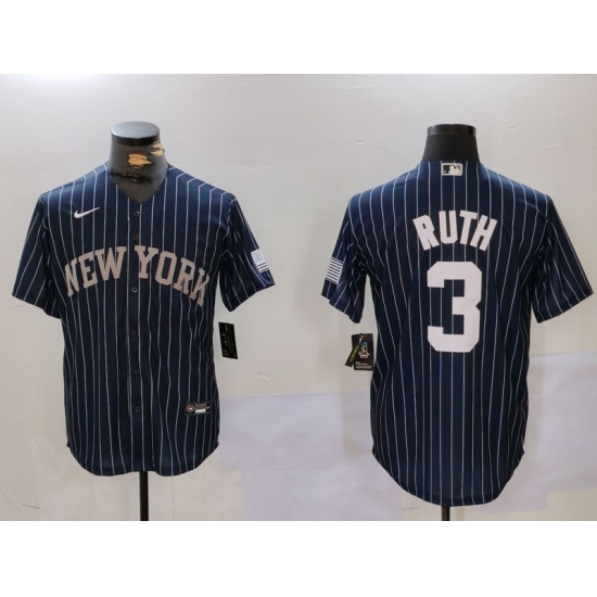 Men's New York Yankees #3 Babe Ruth Navy Pinstripe Fashion Cool Base Jerseys