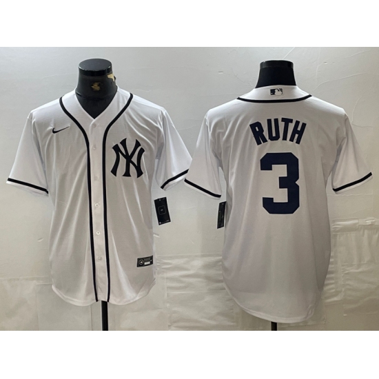 Men's New York Yankees #3 Babe Ruth White Fashion Cool Base Jersey