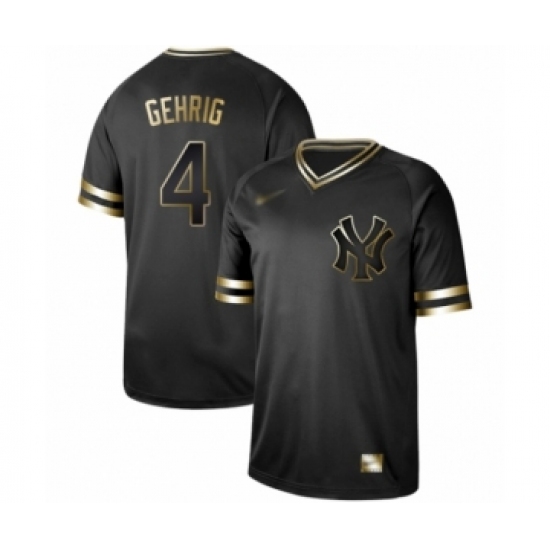 >Men's New York Yankees #4 Lou Gehrig Authentic Black Gold Fashion Baseball Jersey