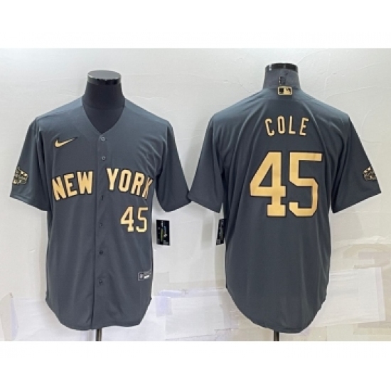 Men's New York Yankees #45 Gerrit Cole Grey 2022 All Star Stitched Cool Base Nike Jersey