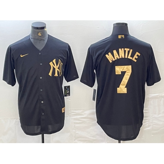 Men's New York Yankees #7 Mickey Mantle Black Gold Cool Base Stitched Jersey