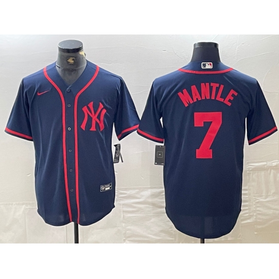 >Men's New York Yankees #7 Mickey Mantle Navy Red Fashion Cool Base Jersey