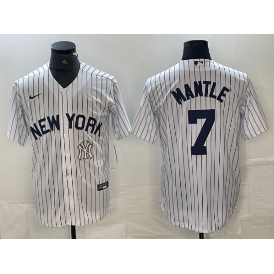 >Men's New York Yankees #7 Mickey Mantle White 2024 Cool Base Stitched Jersey