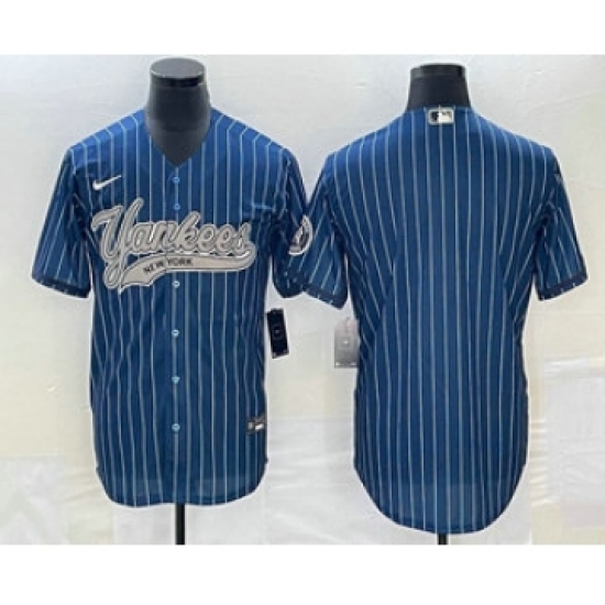 Men's New York Yankees Big Logo Navy Blue Pinstripe Cool Base Stitched Baseball Jersey