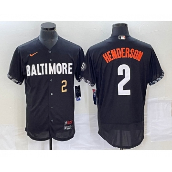 Men's Nike Baltimore Orioles #2 Gunnar Henderson Black 2023 City Connect Flex Base Stitched Jersey 1