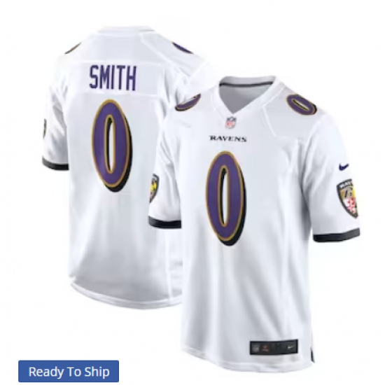 Men's Nike Baltimore Ravens #0 Roquan Smith White Team Limited Jersey