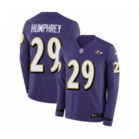 >Men's Nike Baltimore Ravens #29 Marlon Humphrey Limited Purple Therma Long Sleeve NFL Jersey