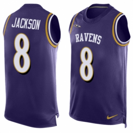 >Men's Nike Baltimore Ravens #8 Lamar Jackson Elite Purple Player Name & Number Tank Top NFL Jersey