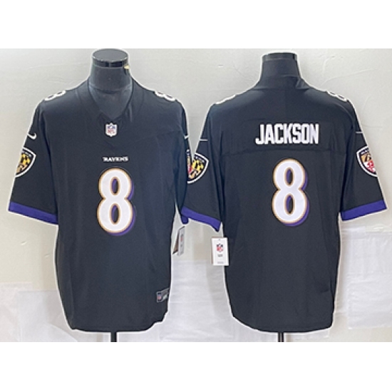 Men's Nike Baltimore Ravens #8 Lamar Jackson Black 2023 F.U.S.E Throwback Vapor Limited Stitched Jersey