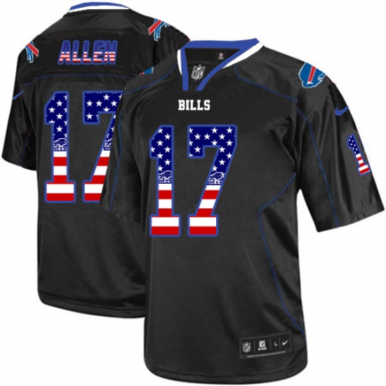 >Men's Nike Buffalo Bills #17 Josh Allen Elite Black USA Flag Fashion NFL Jersey