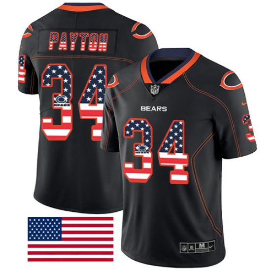 >Men's Nike Chicago Bears #34 Walter Payton Limited Black Rush USA Flag NFL Jersey
