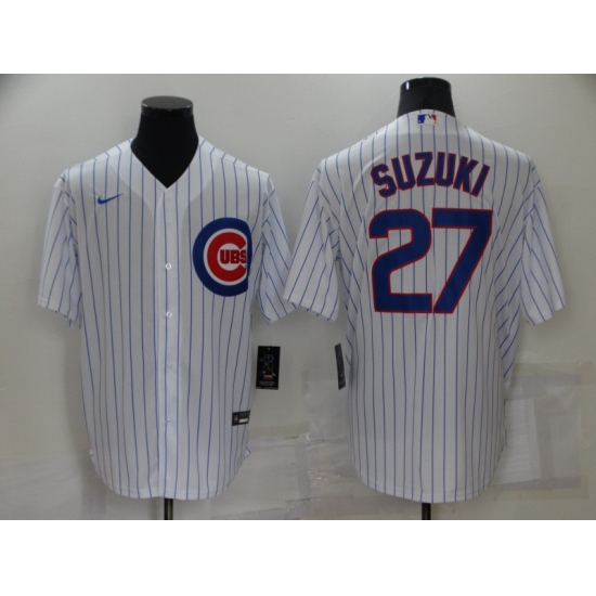 Men's Nike Chicago Cubs #27 Addison Russell White Home Flex Base Authentic Collection Jersey